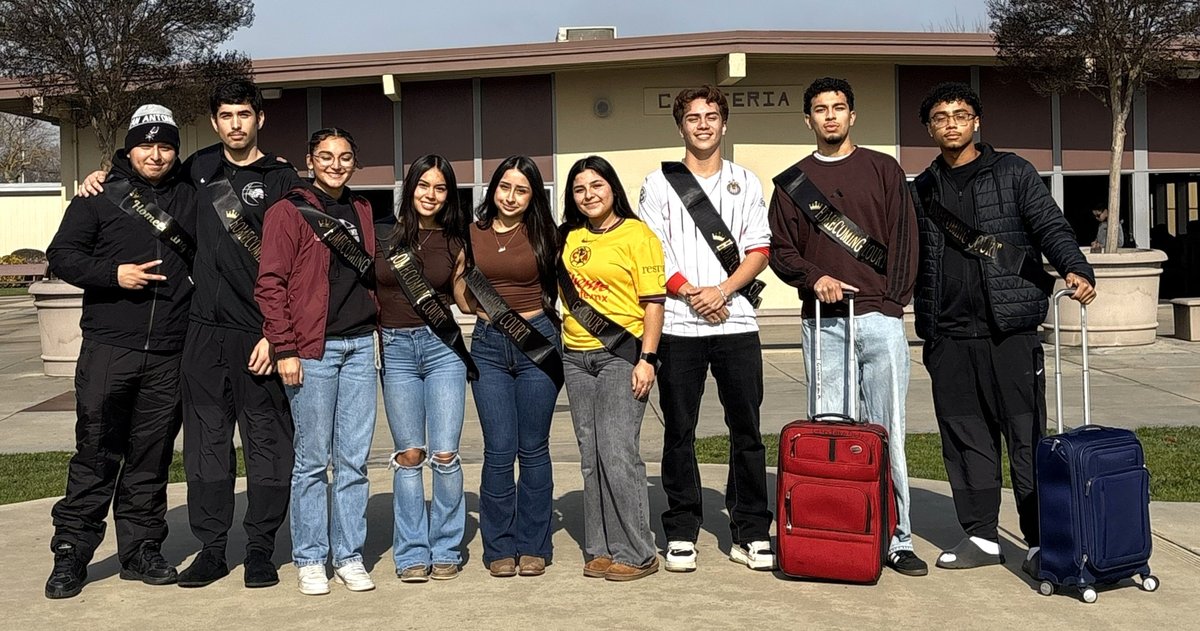 Homecoming hopefuls for the Riverbank High School Winter Homecoming celebration include, from left, George Serna, Omar Gomez, Maya Guzman, Raquel Jimenez, Mia Perez, Nathalie Garcia, Jeancarlo Torres, Gustavo Ortiz and Jayden Spears. Missing from photo is Brittany Montes. Theme for the week is “Bruin Jams” which is an ode to the ‘90s basketball classic move “Space Jams.” There are special lunchtime activities and dress up days being observed throughout the week. The festivities culminate with varsity basketball Homecoming Games on Friday, Feb. 6 with the varsity girls at 6 p.m., varsity boys at 7:30 p.m. and featuring the crowning of the new Homecoming King and Queen.