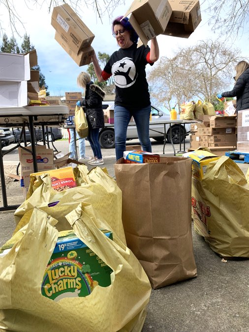 Boxes and bags were ready and the line of vehicles stretched along Mann Avenue and down around the corner on to West G Street in Oakdale, as residents from throughout the area drove in for some free food on Monday, March 4.