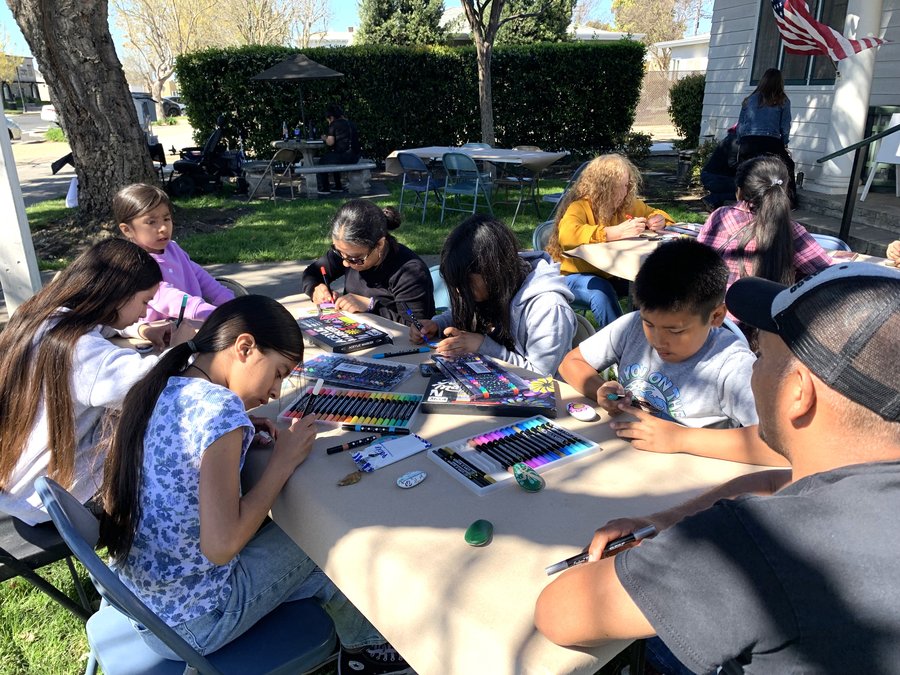 Set up on the lawn outside the Historical Society Museum at 3237 Santa Fe in downtown Riverbank, there were plenty of rocks to be painted, tours offered of the museum and free books available through the book exchange.