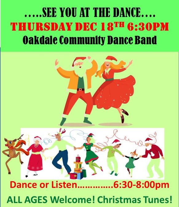 Oakdale Community Bands will present the Concert Band’s Christmas Concert on Tuesday, Dec. 16 followed by the Dance Band’s Concert and Dance on Thursday, Dec. 18.