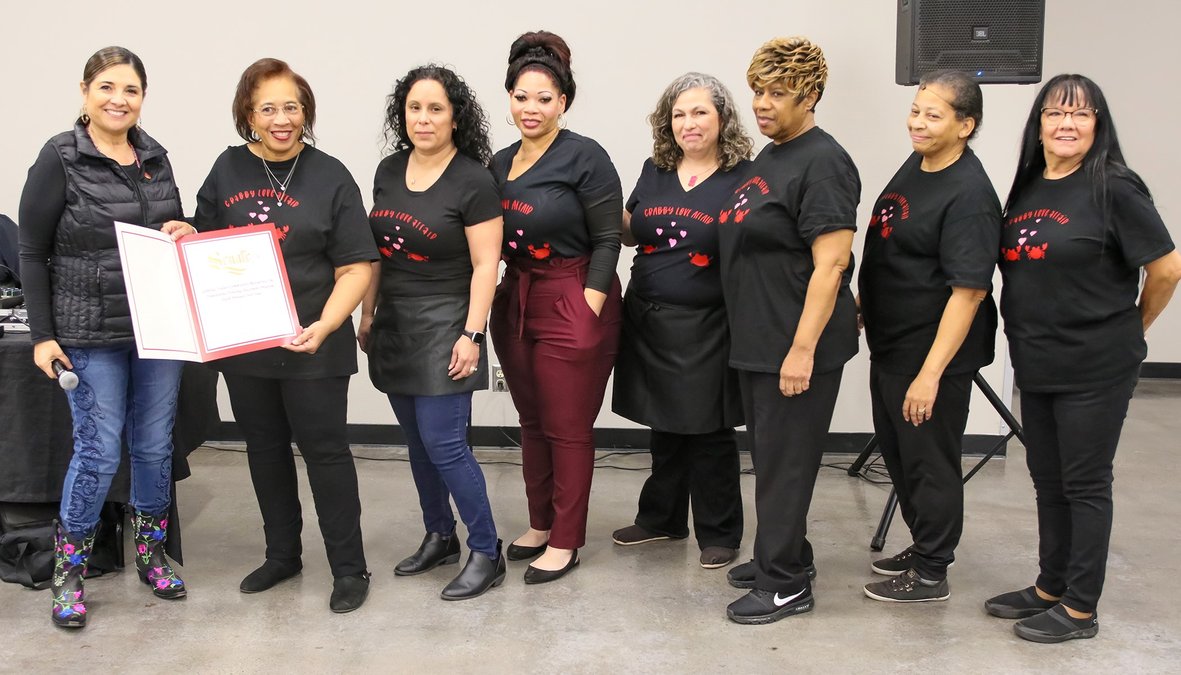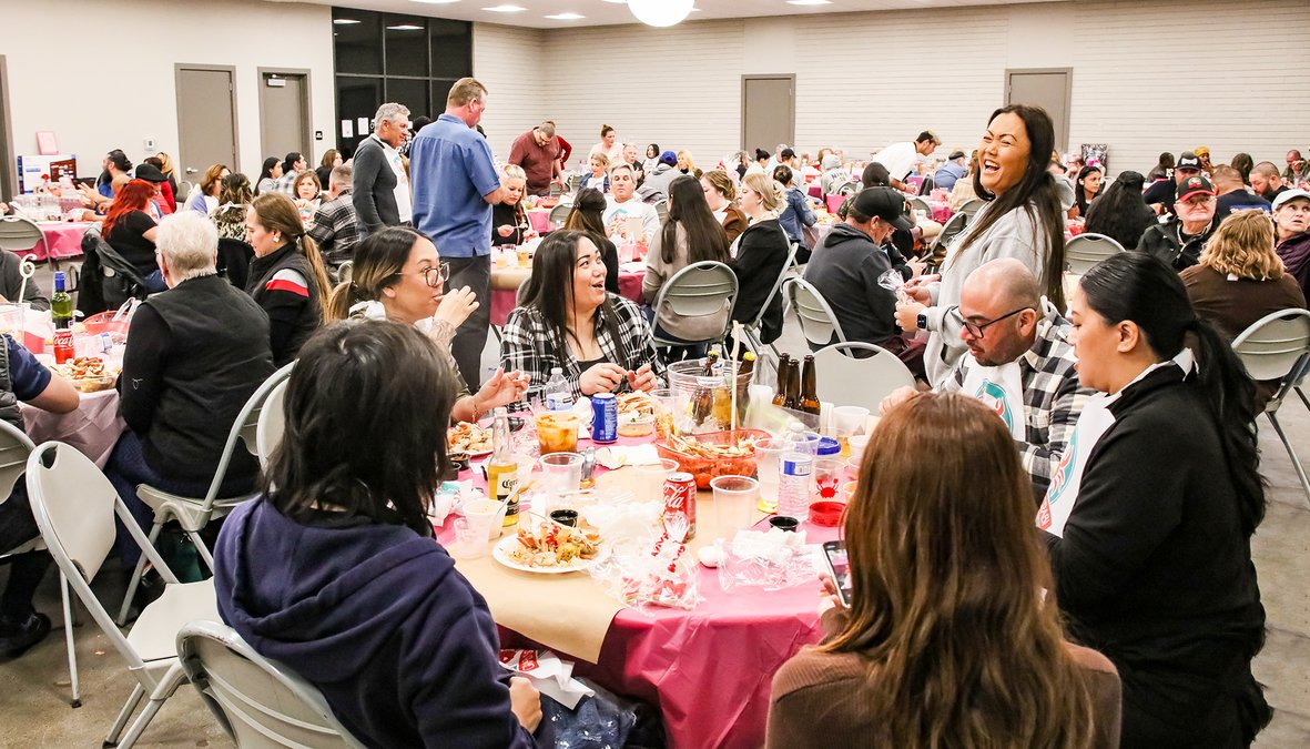 The Sixth Annual Crab Feed was dubbed a “Crabby Love Affair” celebrating the proximity to Valentine’s Day, hosted on Saturday, Feb. 11, in the Riverbank Community Center. Table decorations were in shades of pink and red.