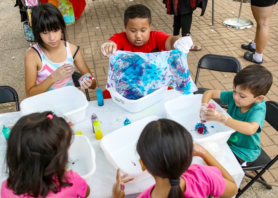 The younger members in the crowd at the market were treated to the opportunity to learn how to make tie-dye articles. At the same time, a new vendor was selling tie-dyed garments, many reminiscent of the 1960s origin of the art style.