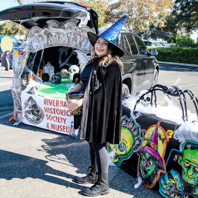 Halloween celebrations got an early start, enjoying a morning of a jumble of seasonal activities, collectively called a “Boo Bash” by organizers. Held in the eastern parking lot at the Galaxy Theatres complex on Saturday, Oct. 18 from 9 a.m. to noon, it involved a number of commercial vendors, selling both food and products, community organizations, safety fair participants, and individuals and organizations hosting trunk or treat sites. “Love Riverbank’s Halloween Safety Boo Bash was a huge success, drawing an estimated 1,500 to 2,000 community members for a morning of family fun, safety education, and neighborhood connection,” said Love Riverbank City Leader Sammi Martinez.