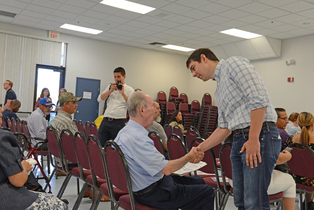 A huge crowd gathered for a Town Hall held this past Sunday, Aug. 4 at Saint Frances of Rome Church in Riverbank that was held in both English and Spanish, hosted by Father Misael Avila. The church hall was filled with people from the community that were on hand to meet Congressman Josh Harder and ask him some poignant questions on homelessness, immigration, the H2A Bill, I.C.E. (United States Immigration and Customs Enforcement), and the mass shootings that have occurred recently across the country.