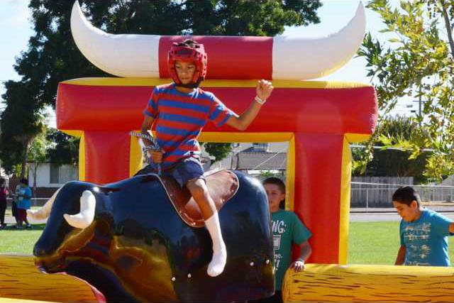 Riverbank Parks and Recreation Supervisor Kerrie Webb strolled around the event visiting with the youth and enjoying the festivities. She even participated in one of the activities by taking the mechanical bull for a spin.