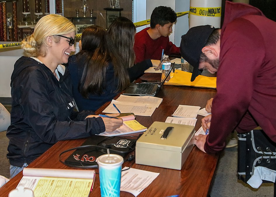 The official registration was hosted on Thursday, Dec. 5, on the opening night of the Ron Peterson Tip-Off Basketball Tournament, in the lobby of the Fauria Gymnasium on the RHS campus. Bruin coaches and players all help out with the youth hoop clinics and games.