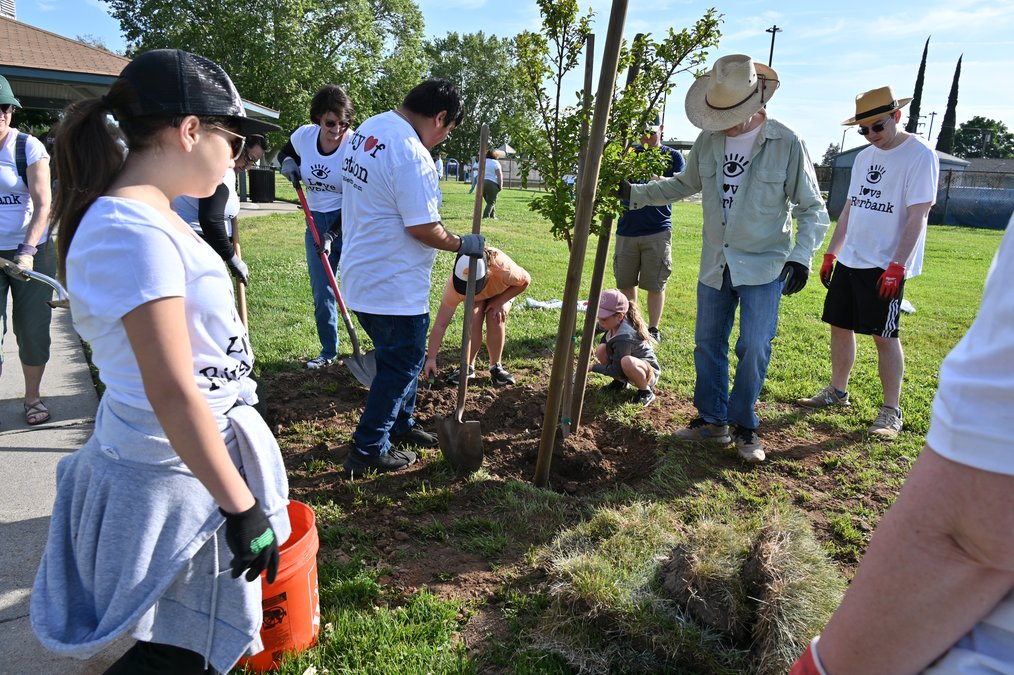 Volunteers planted trees throughout Riverbank including Castleberg Park, Pioneer Park, Jacob Myers Park, and the Community Center Park.