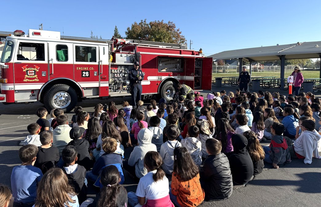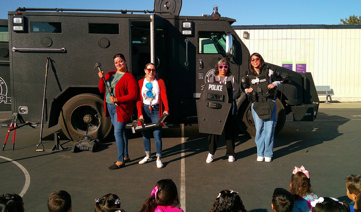 Plascencia said the invitation went out to several first responders, and they were able to set up multiple stations for students to visit during the assembly. The presenters were set up on the blacktop area of the playground, bringing equipment including a fire truck, SWAT vehicle, ambulance and more.