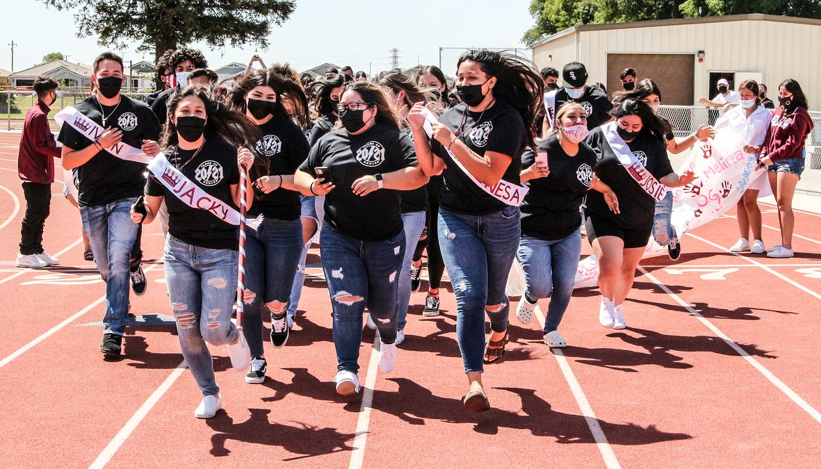 As part of the Friday rally, the Bruin royalty was selected. The top five nominees for Queen that students voted for were Paloma Camacho, Josefina Sosa, Vanesa Calderon, Jacqueline Calderon-Ruiz, and Sheyla Garcia. The top five King nominees were Xavier Rangel, Andrew Savory, Antonio Morales, Emmanuel Diaz, and Ivan Garcia. Parents, guardians, and relatives accompanied the royal court to the field prior to the announcement of the Queen and King. The students crowned Sheyla Garcia as the Queen and Emmanuel Diaz was crowned King, by a vote of the full student body. The royals traditionally would have been selected during the school year, during football and basketball seasons, changed this year to accommodate COVID restrictions.