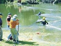 Yellow rubber duckies dropped from the bridge and floated down the Stanislaus River, delighting the children while local firefighters, busy stringing a hose across the river to catch the ducks, fascinated the adults at Saturday's Beyond Earth Day festival at Jacob Myers Park.