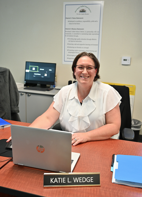 New board member Katie Wedge has two kids in the school district and is very passionate about education. In December she was sworn in for her four-year term. Wedge is a U.S. Navy veteran and in a sense was reminded of her military service when she took the oath of office as she noted that it is very similar.