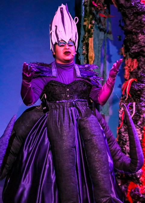 Looking to change her circumstances, Ariel bargains with Ursula, the sea witch, played by Angel Gamez, to gain legs and the opportunity to live with the prince on the surface. Of course, Ursula has designs on taking over the kingdom beneath the sea from King Triton.