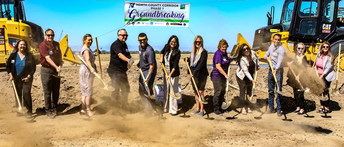 Area officials, contractors and other organizations involved with the North County Corridor project gathered on Claribel Road for a Groundbreaking Ceremony on July 8. Representatives from Caltrans, the City of Modesto, Stanislaus County Supervisors, LAFCo, StanCOG and other groups joined together to review the longstanding history of the project, then grab shovels to symbolically turn over the first pile of dirt. Modesto Mayor Sue Zwahlen and Riverbank Mayor Rachel Hernandez both described how the project came together over the past few decades. Project contractors explained how it is designed to connect Highway 99 in Salida with Highway 120 east of Oakdale, bypassing both downtown Riverbank and Oakdale.