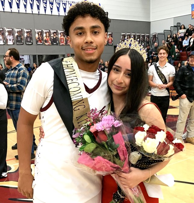 Members of the Homecoming Court were introduced at halftime of the varsity boys game, with King and Queen hopefuls escorted on to the basketball court by family members, as Luu shared a bit about each. Taking home the honors were Homecoming Queen Mia Perez and Homecoming King Jayden Spears.