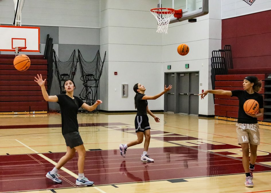 RHS girls practice in the Ray Fauria Memorial Gymnasium after school, with the varsity team being coached by Janelle Luu, and the JV team coached by her brother, Ty Luu.