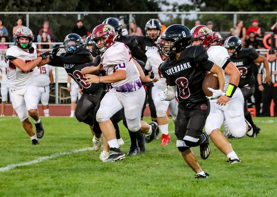 While successful in the preseason, getting two wins by shutout, Riverbank fell in the home league opener. After scoring the first touchdown to go up 7-0, the Bruins were ultimately overwhelmed by the Red Hawks, 55-7. They play at Summerville in Tuolumne County this Friday, Sept. 27.