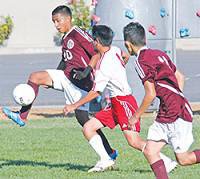 Riverbank High's defense of its 2011 Trans-Valley League boys soccer crown continued with a third consecutive blowout victory Sept. 24 at Ripon Elementary.