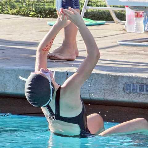 The local team, with friends and family of more than 80 swimmers, combined with an equally large contingent for the Pirates, resulted in a pool facility packed to overflowing. Riverbank beat Patterson with team totals of 137-87.