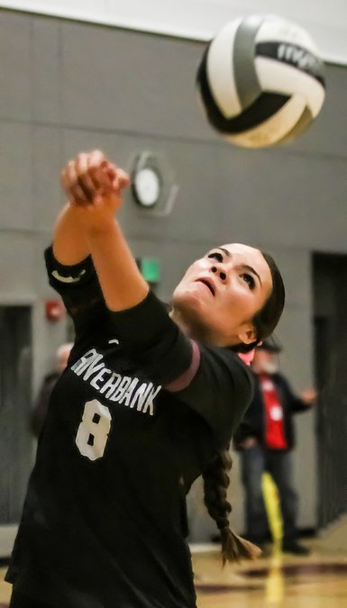 Riverbank netters hosted Big Valley Christian High School from Modesto on Tuesday, Oct. 14, falling in three games to the Lady Lions, 10-25, 5-25, and 6-25. On Thursday they dropped three to the Lady Red Hawks of Calaveras, 22-25, 11-25 and 10-25.