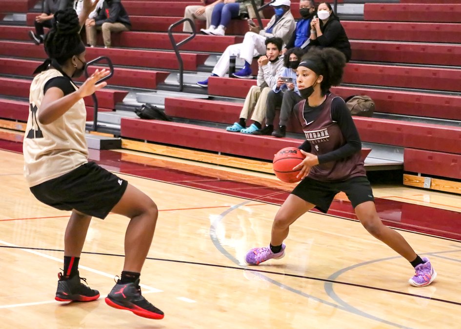 Riverbank’s varsity girls basketball season got underway with a scrimmage hosted at the Ray Fauria Memorial Gymnasium. The Lady Falcons of Millennium High School in Tracy came by, playing two 20-minute periods.